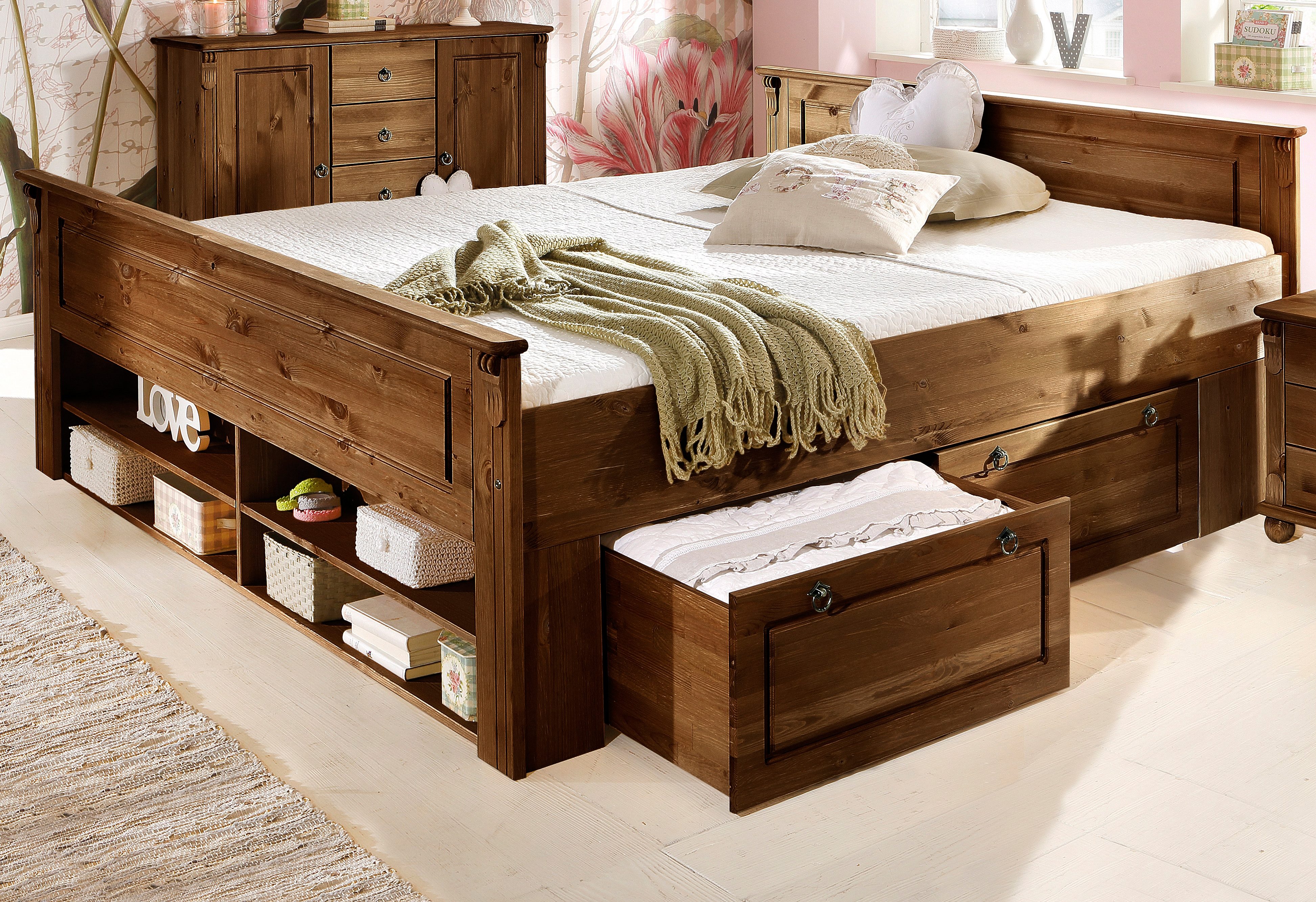 Landhausbett 120x200 Cm Lattenrost 4 Schubladen Optional Bett
