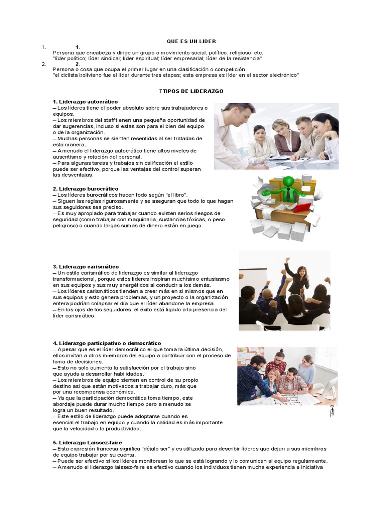 Tipos De Liderazgo Apuntes De Ciencias De La Educacion Docsity