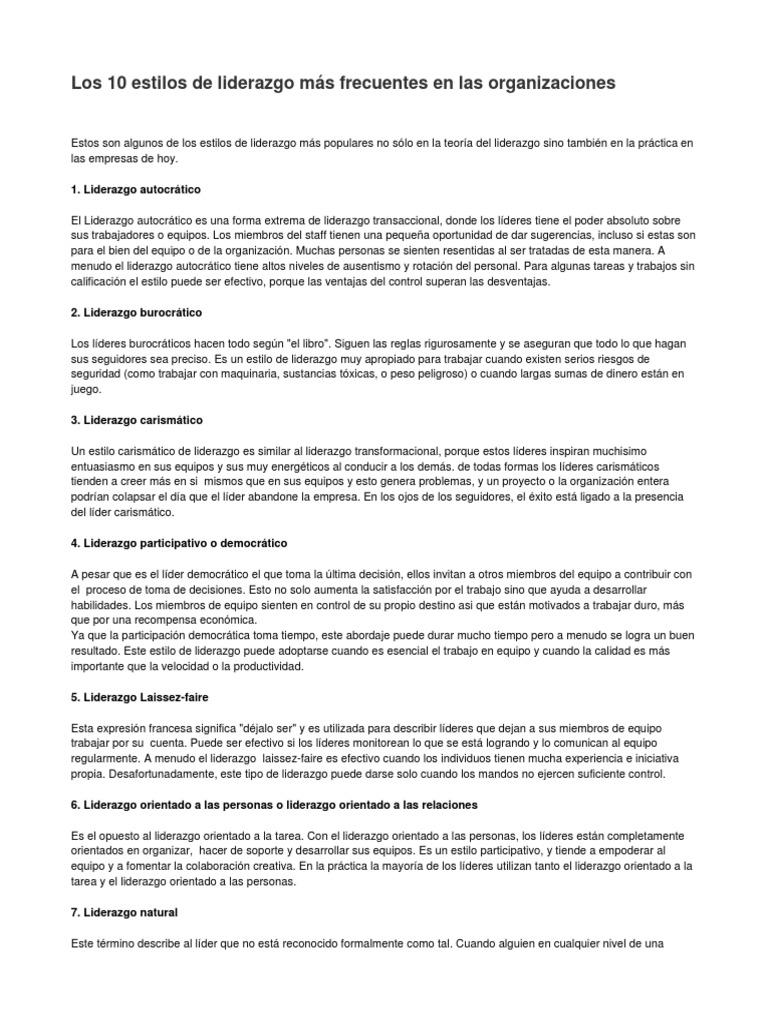 2 Los Diez Estilos De Liderazgo Pdf