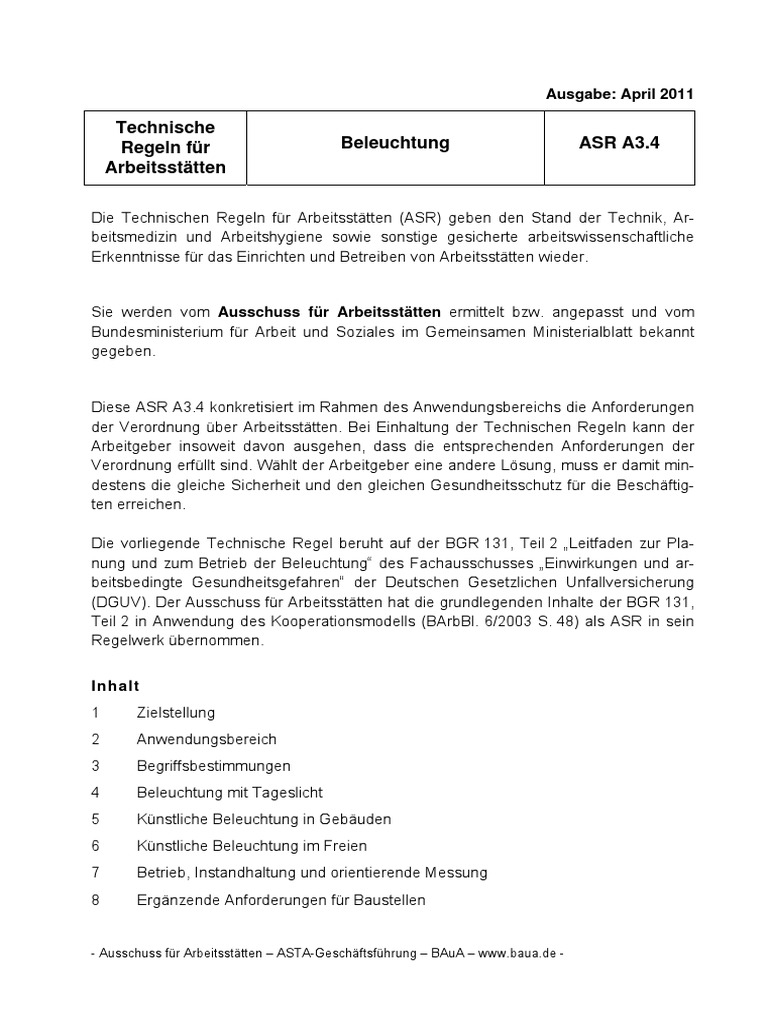 Technische Regeln Fur Arbeitsstatten Beleuchtung Asr A3 4